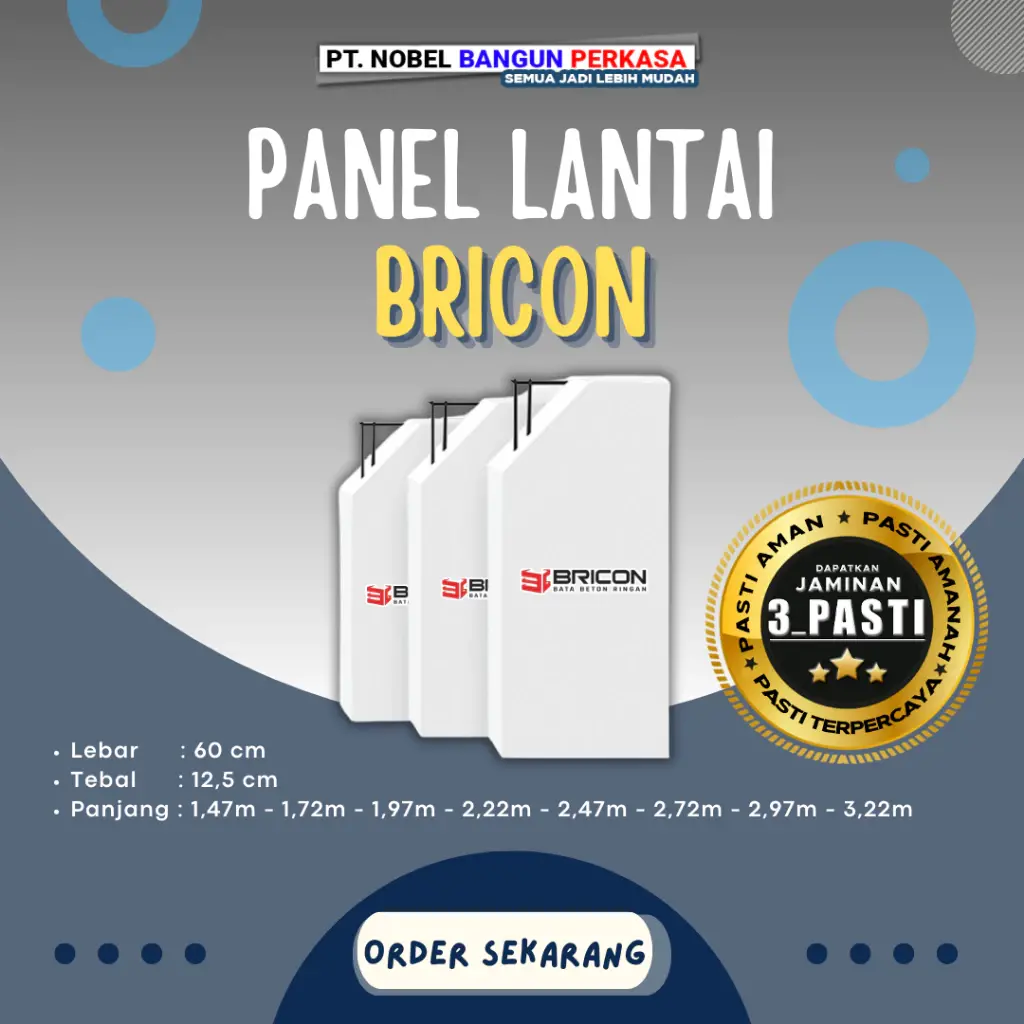 Dengan adanya jaminan 3 pasti di PT NOBEL BANGUN PERKASA. Saya semakin percaya beli bata ringan untuk kebutuhan proyek saya. Harganya sangat ekonomis, dan barang yang dikirim original.