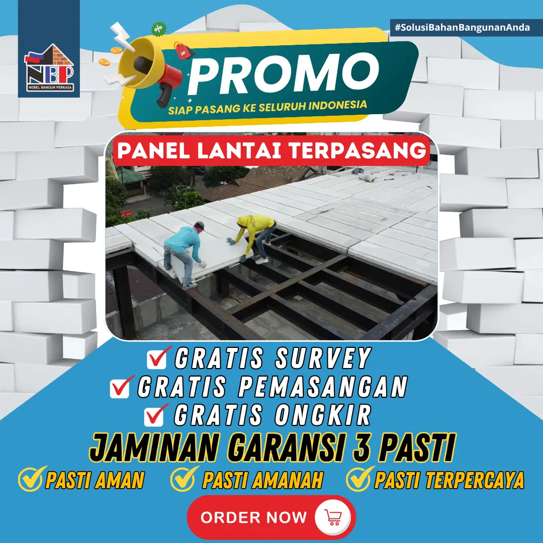 PT Nobel Bangun Perkasa adalah distributor dan aplikator panel lantai terpercaya yang berkomitmen menghadirkan solusi konstruksi cepat, kuat, dan efisien untuk proyek perumahan, komersial, dan industri. Dengan dukungan tim berpengalaman dan jaringan distribusi luas, kami menawarkan produk berkualitas tinggi seperti panel lantai, bata ringan, dan semen mortar, lengkap dengan layanan pemasangan profesional yang mengutamakan ketepatan, kualitas, dan keamanan struktur bangunan.